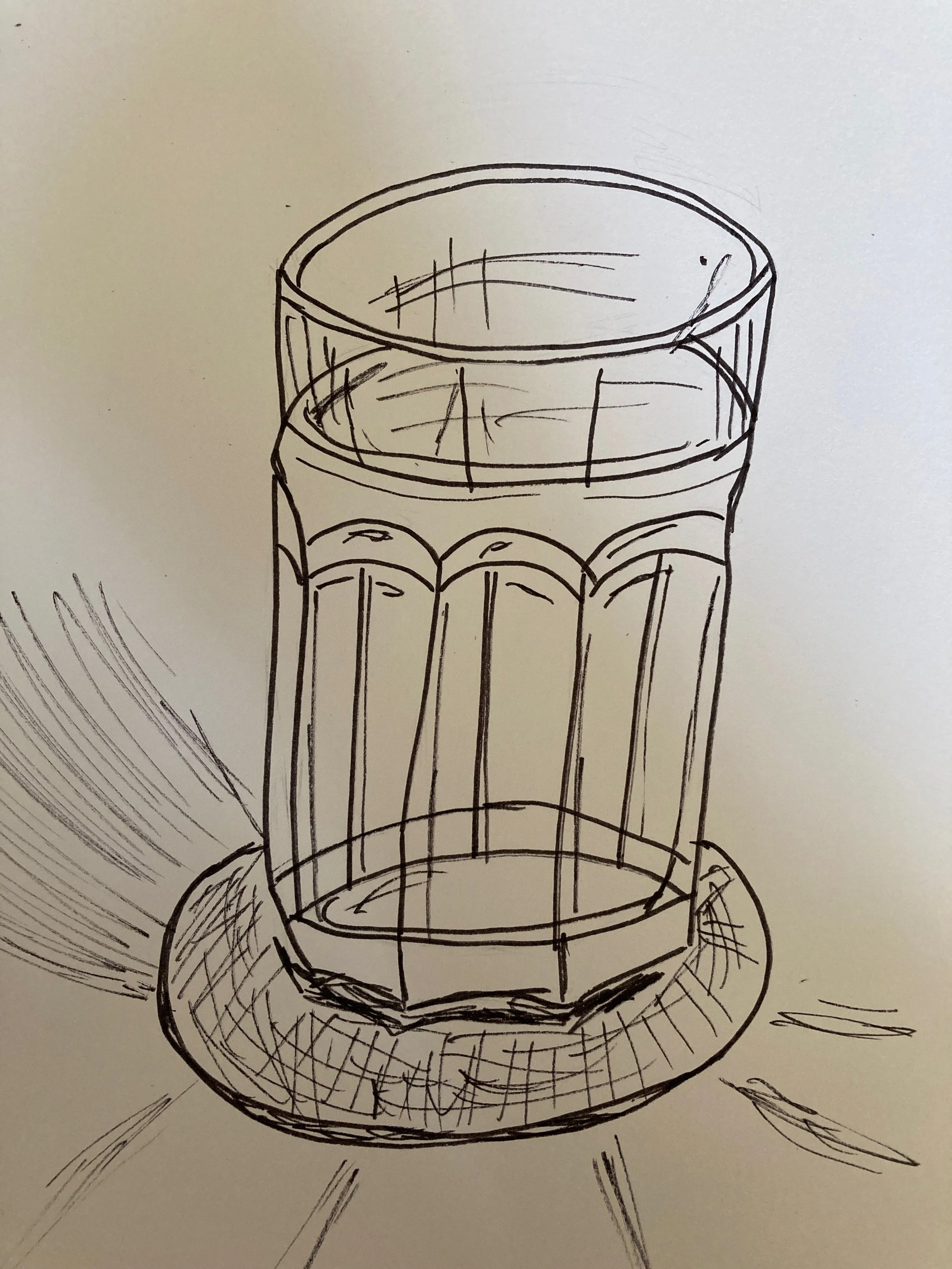I had a feeling before I started that this one wouldn’t go well. I struggled to decide what to draw, panicked, and sketched my glass of water. It looks like the glass is a bit drunk, whoops.