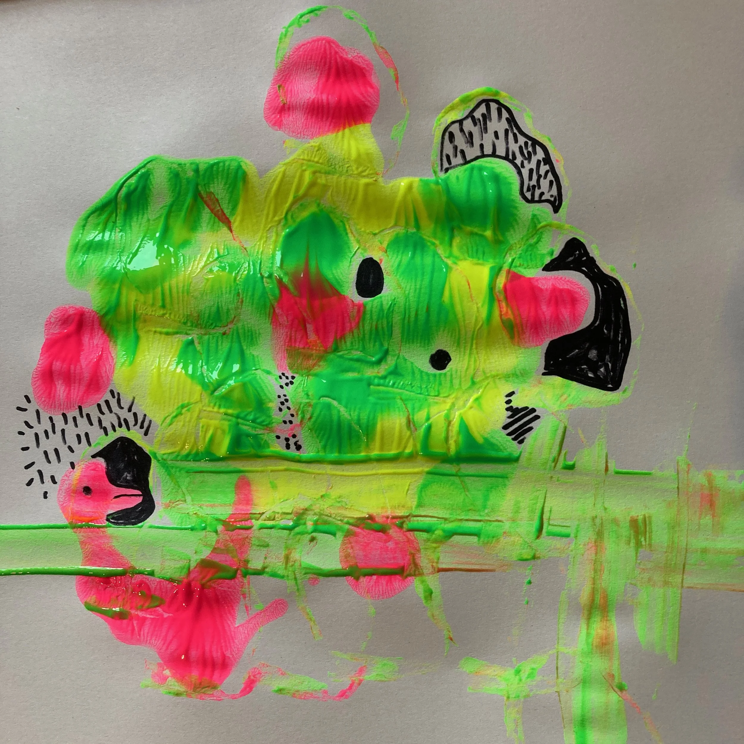 I sketched with the paints and took a print by squishing it with a sheet of a4 paper to see what would happen.