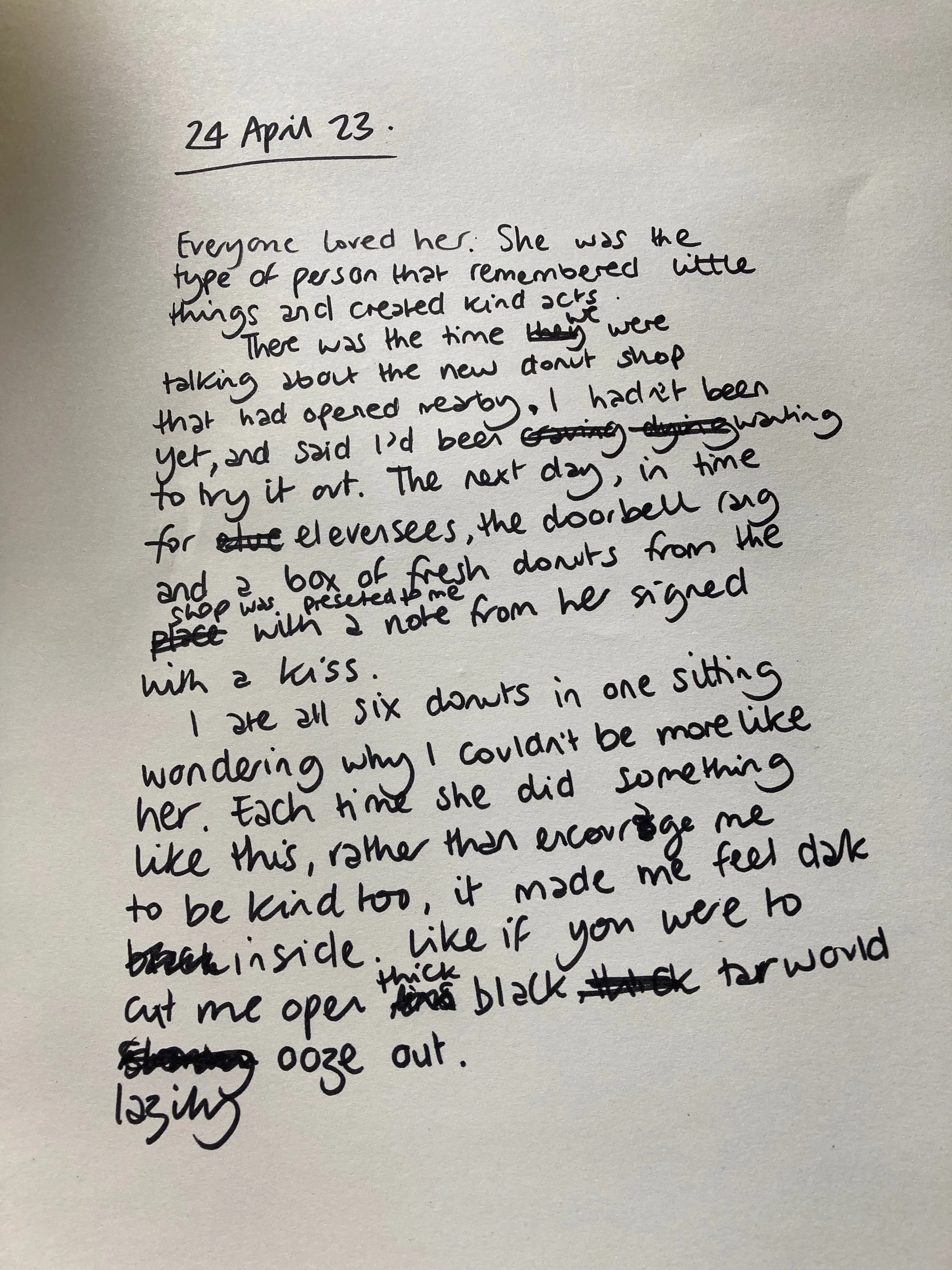 After I finished the ten minutes of freewriting I read it aloud. It let me see how it feels, if it’s working and where the language is clunky. If I’m feeling bold I will record myself reading the next one.