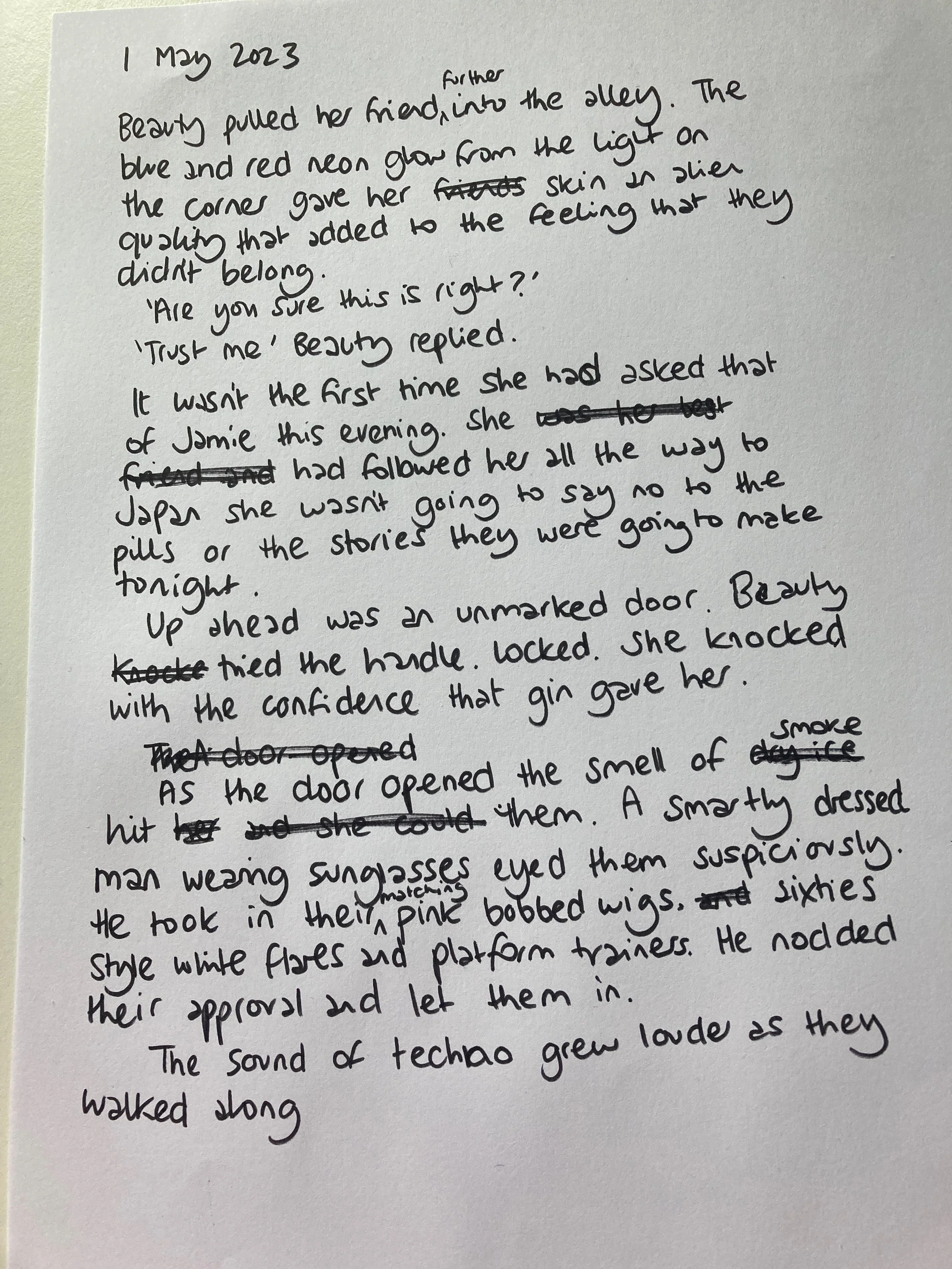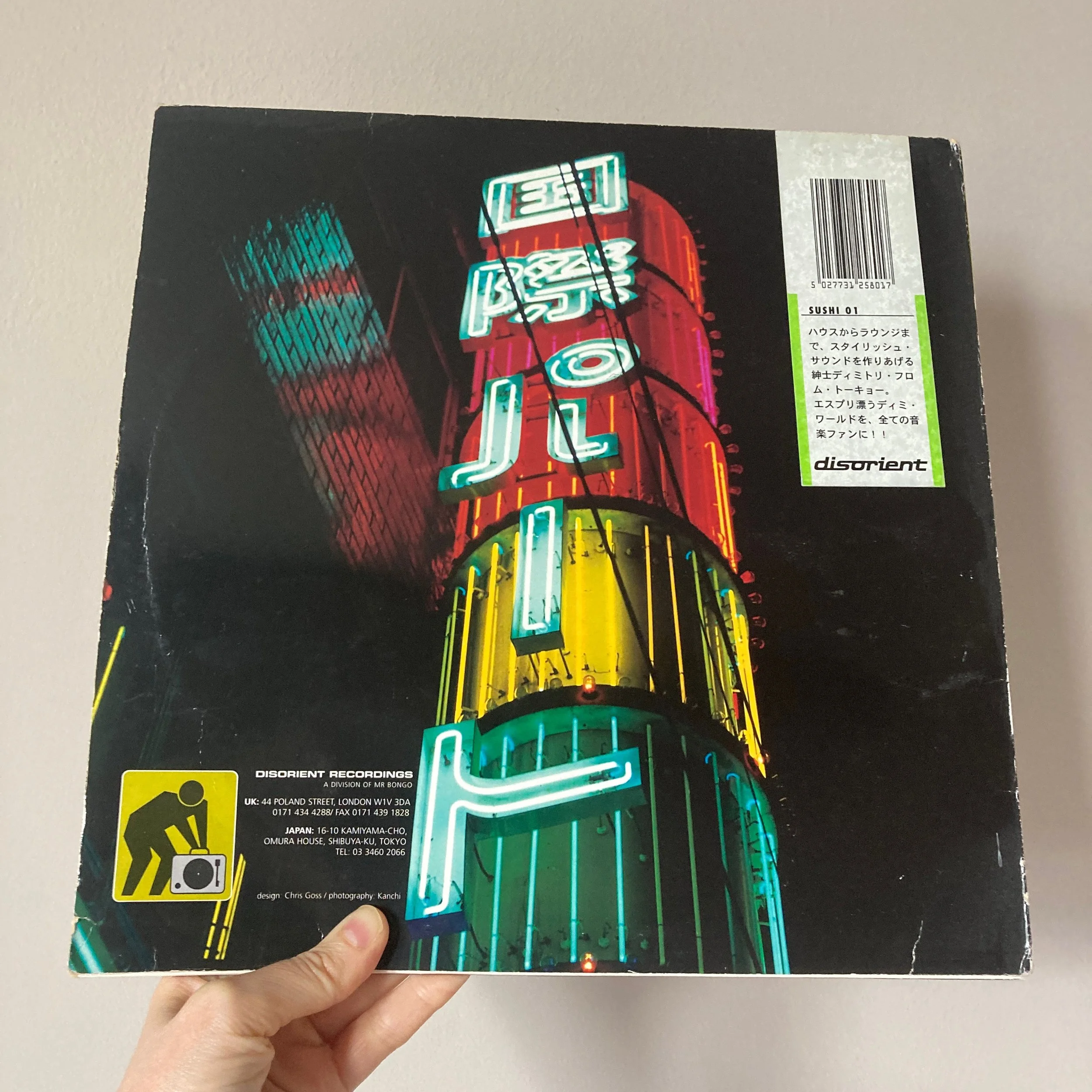 The record I selected was the Shibuya Connection EP by Dimitri from Tokyo, I had never heard it before and guessed it was going to be some weird dark techno. Wrong! The reflection of the neon light shining on the brick wall kickstarted my imagination for the writing challenge.