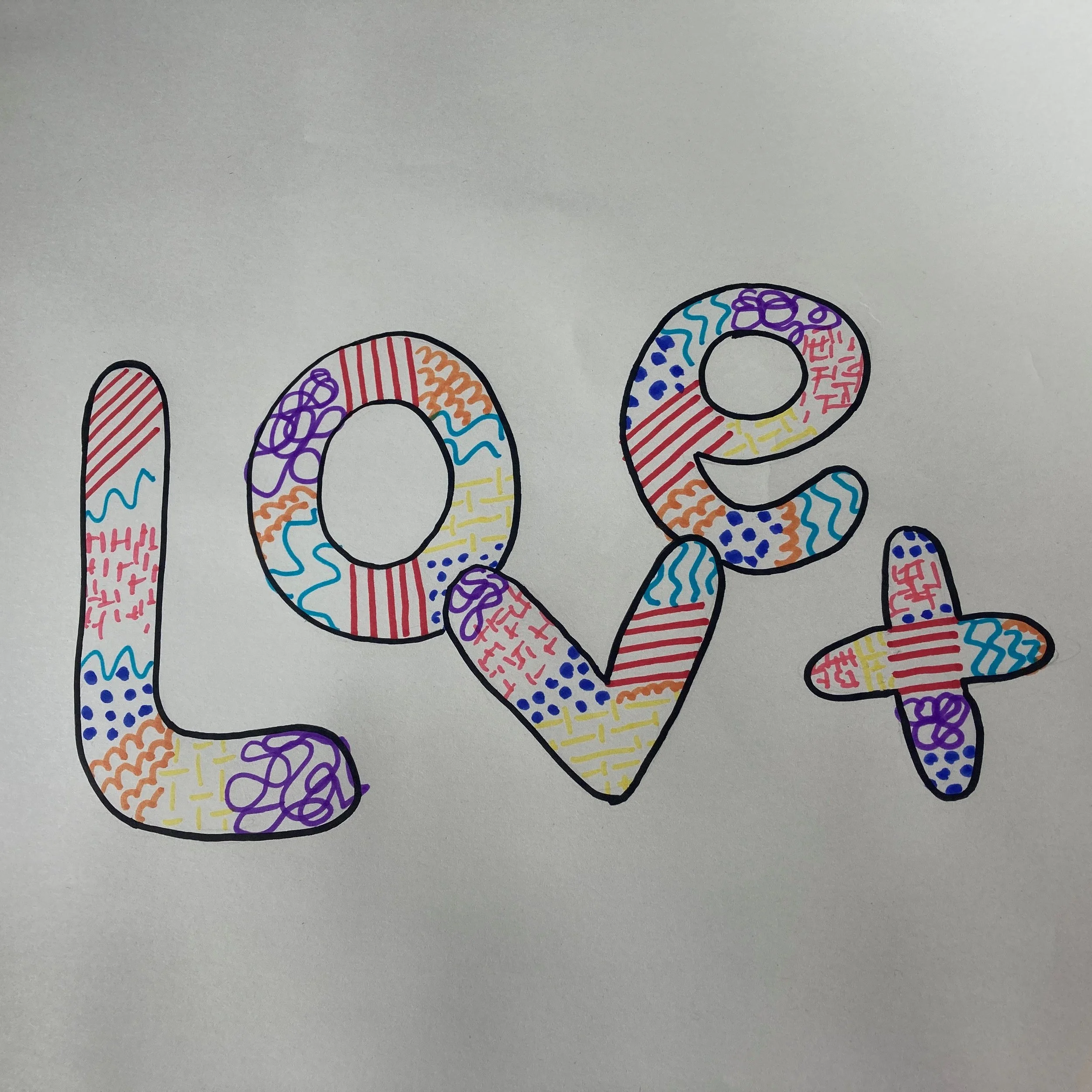 The vocals start with love, so I quickly decided to sketch that out and tried to make the ‘v’ look a bit like a heart. I added a plus symbol to represent when the singer says love, love, and love. I then added the pattern by moving the pen in the way that the music prompted me.