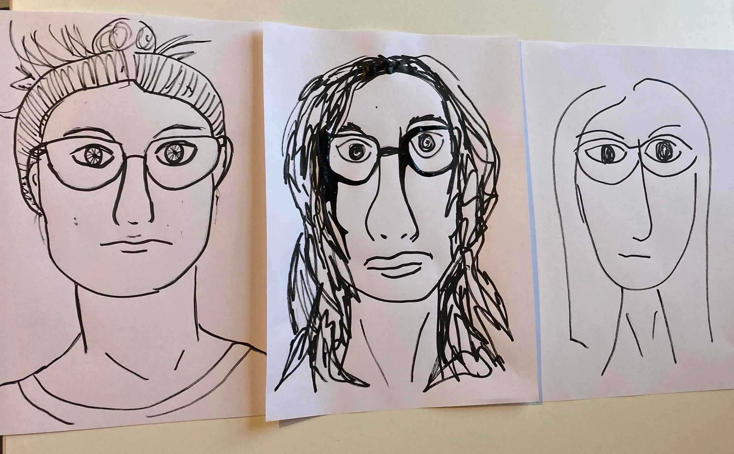 Most artists create a self-portrait so I thought I would have a go. In the ten minutes I managed to crank out three, all terrible!