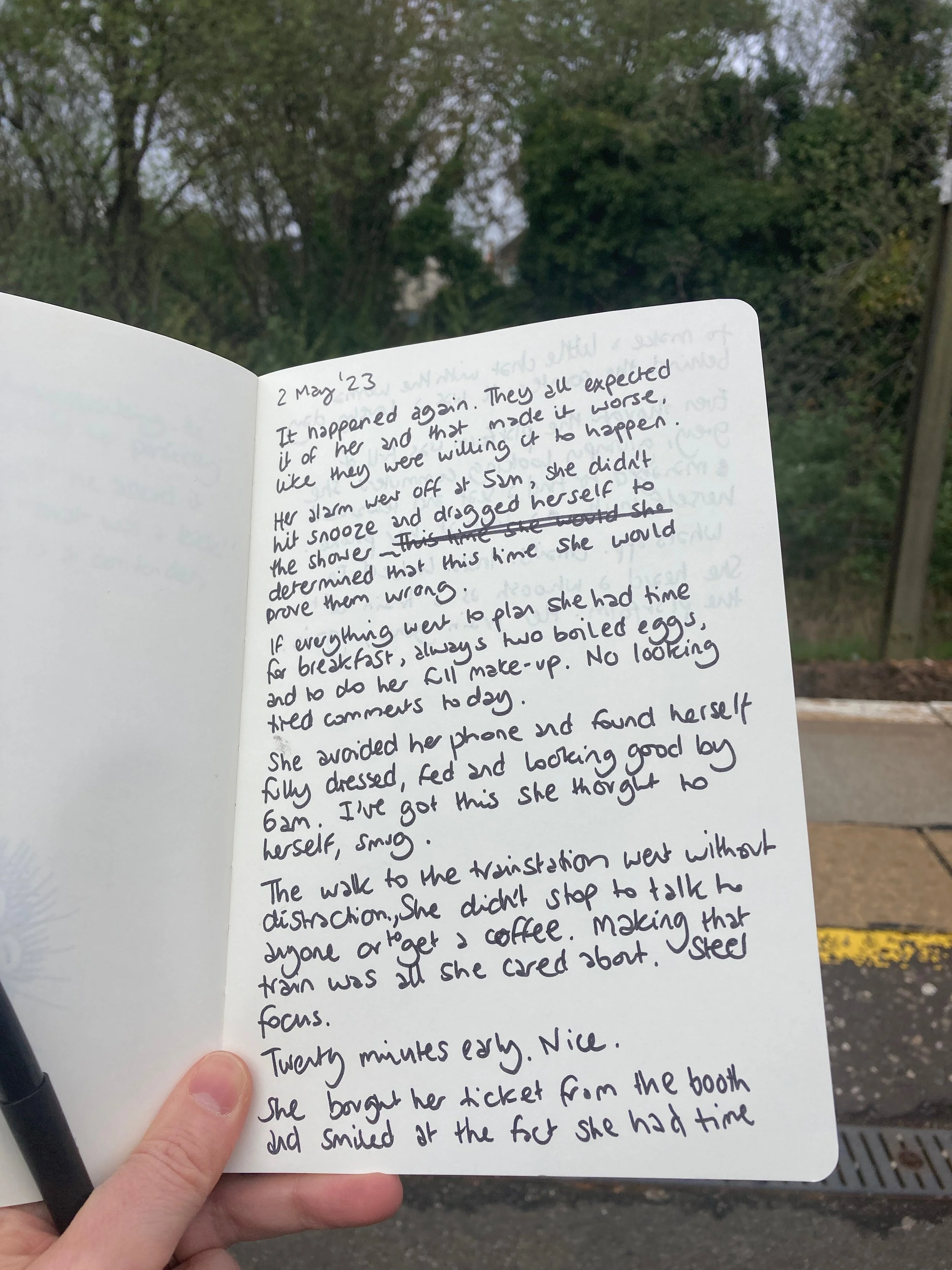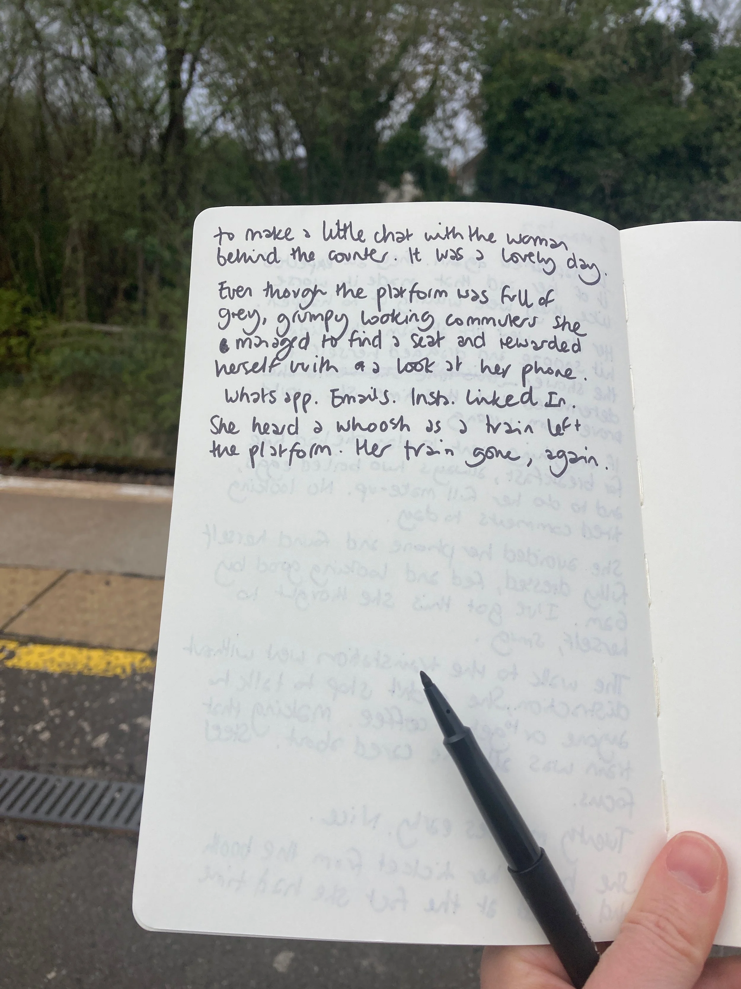 This morning I had to catch a train to a meeting, I arrived early and took the opportunity to write while waiting. I love writing outdoors, it feels like freedom.