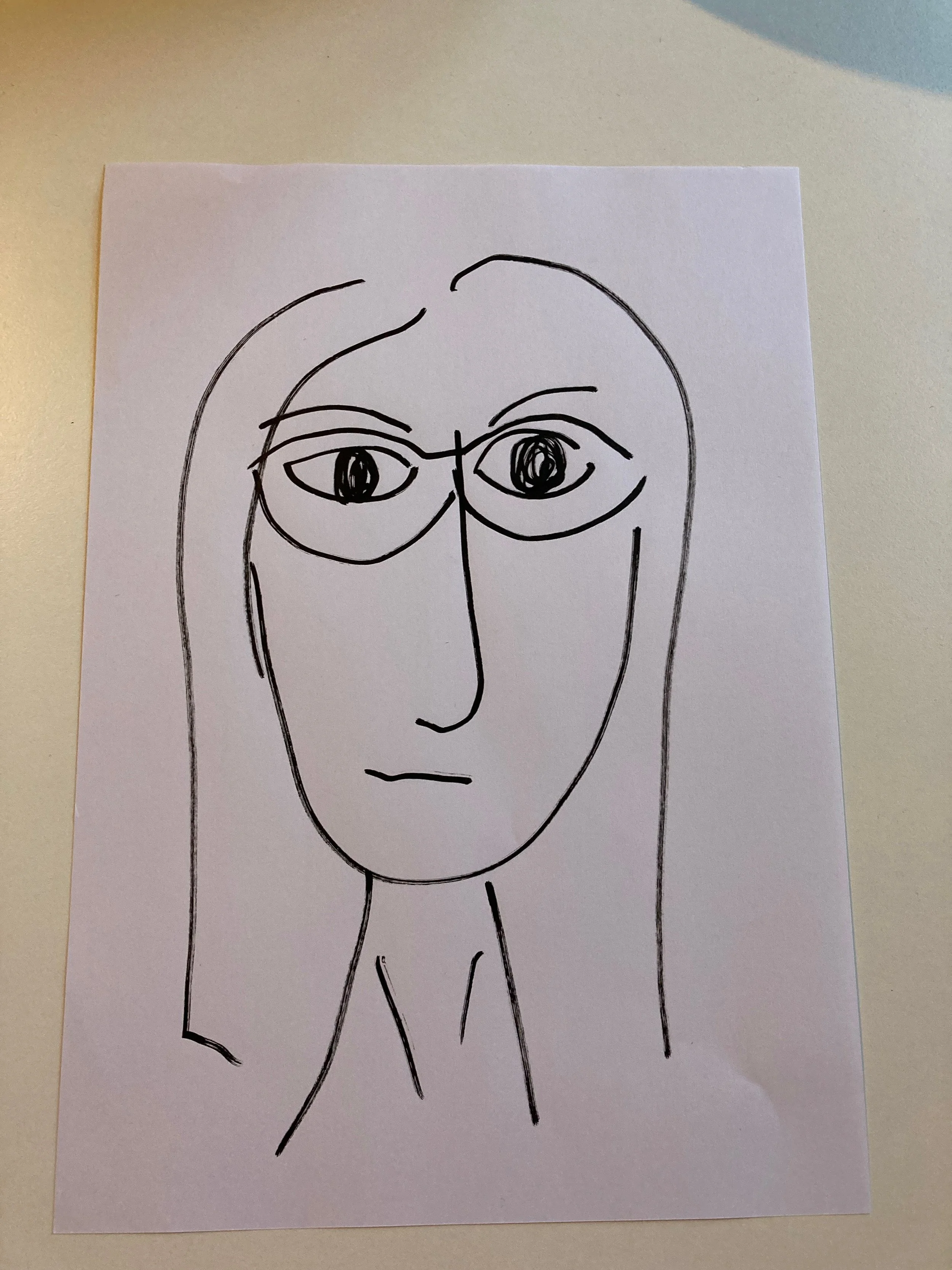 I spent the first six minutes on the first image, it’s all out of proportion and I don’t know why I didn’t add nostrils. The style is graphic which I kind of like. At this point I had my hair up which was tough to draw so I took it down for the next sketch.