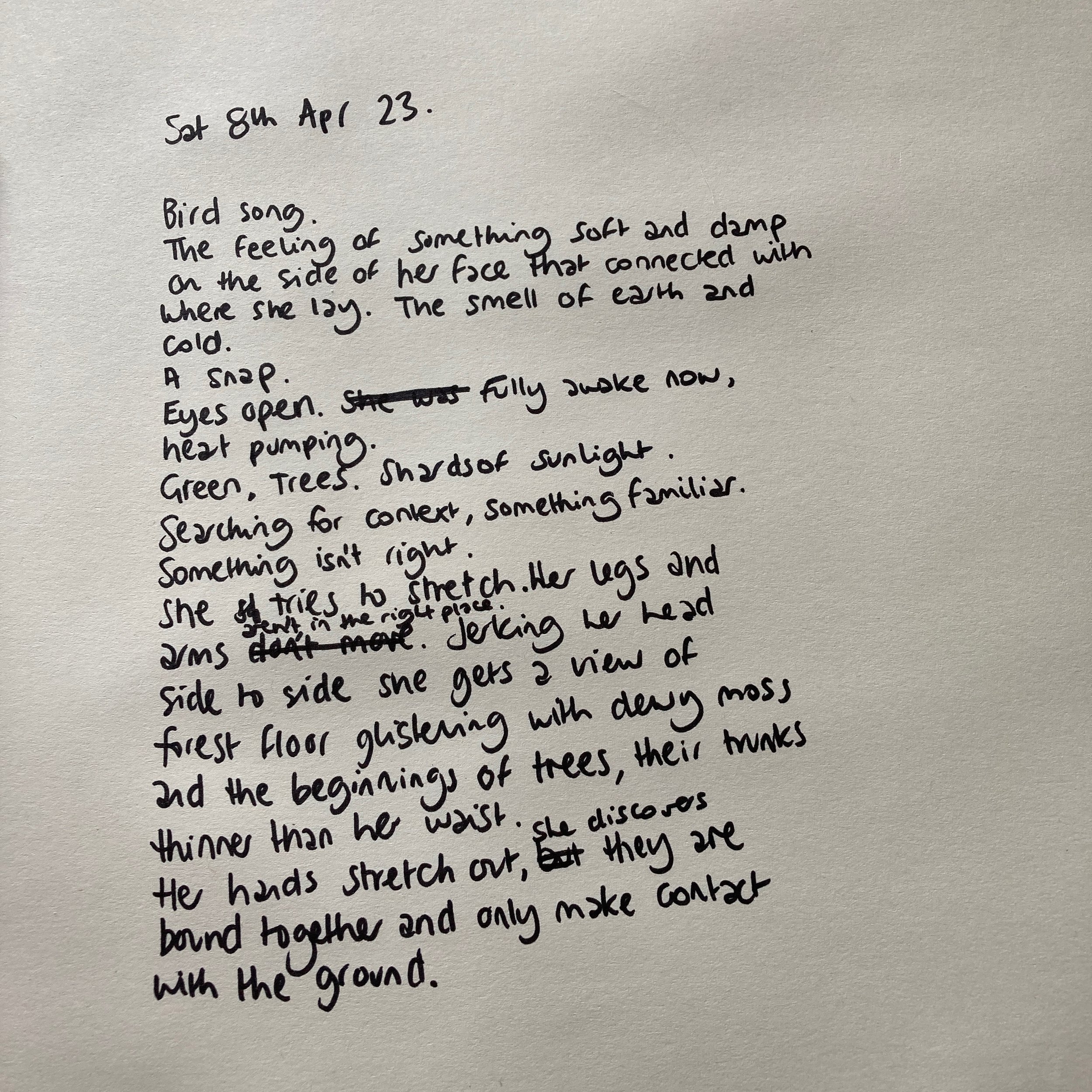 Experimenting with imagining an experience that I haven’t had, not so easy. Ten minutes felt long today.