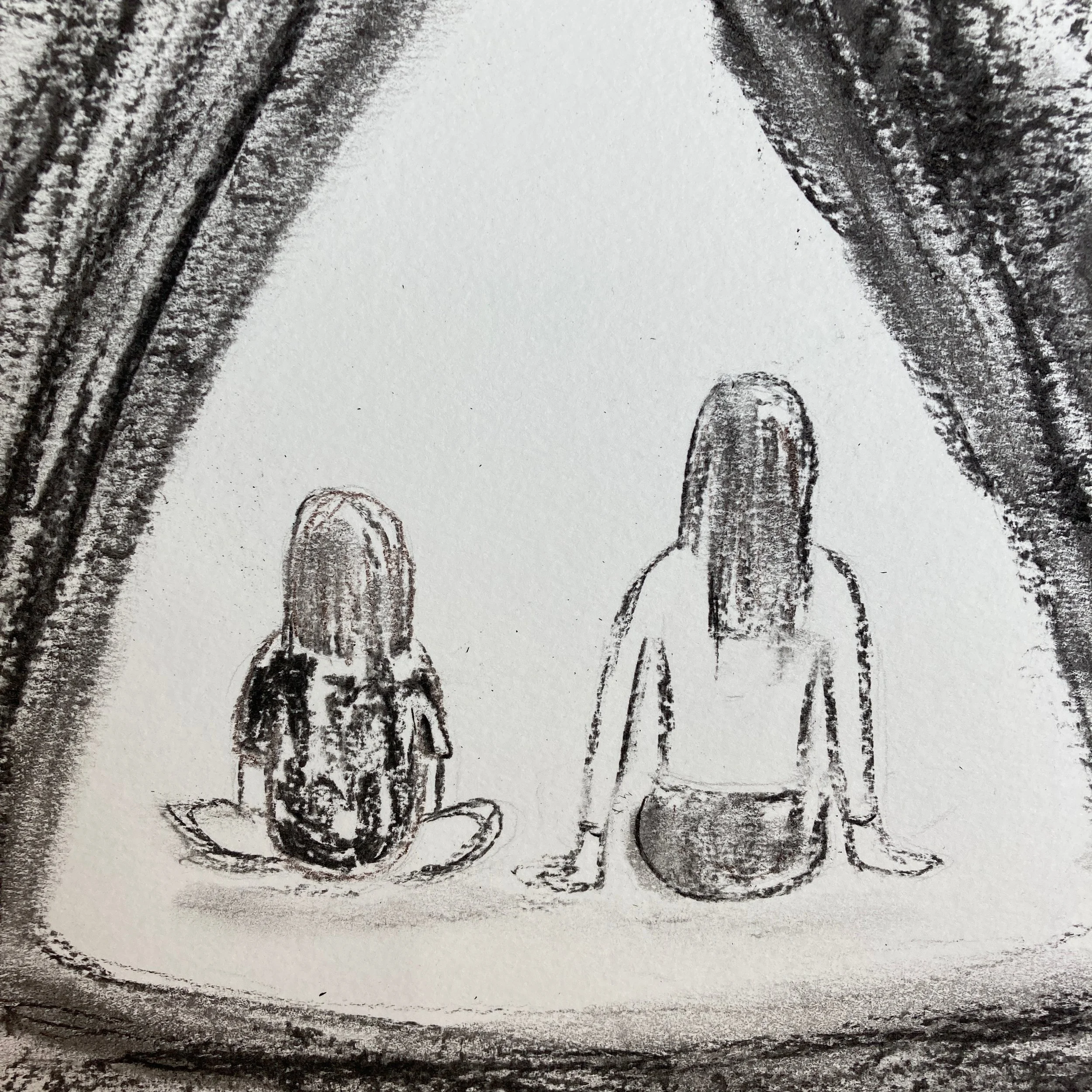 Part of the session included a guided visualisation where Josh asked you to look for the youngest version of yourself. I found 4-year-old Yolander sitting on her own in a pool of light surrounded by darkness. Josh instructed us to hug our younger-self if they are open to it and to play with them. I couldn’t get there so I just sat with my four-year-old self and told her I would always be there for her. I chose to try to capture this moment for the visual for today’s challenge.