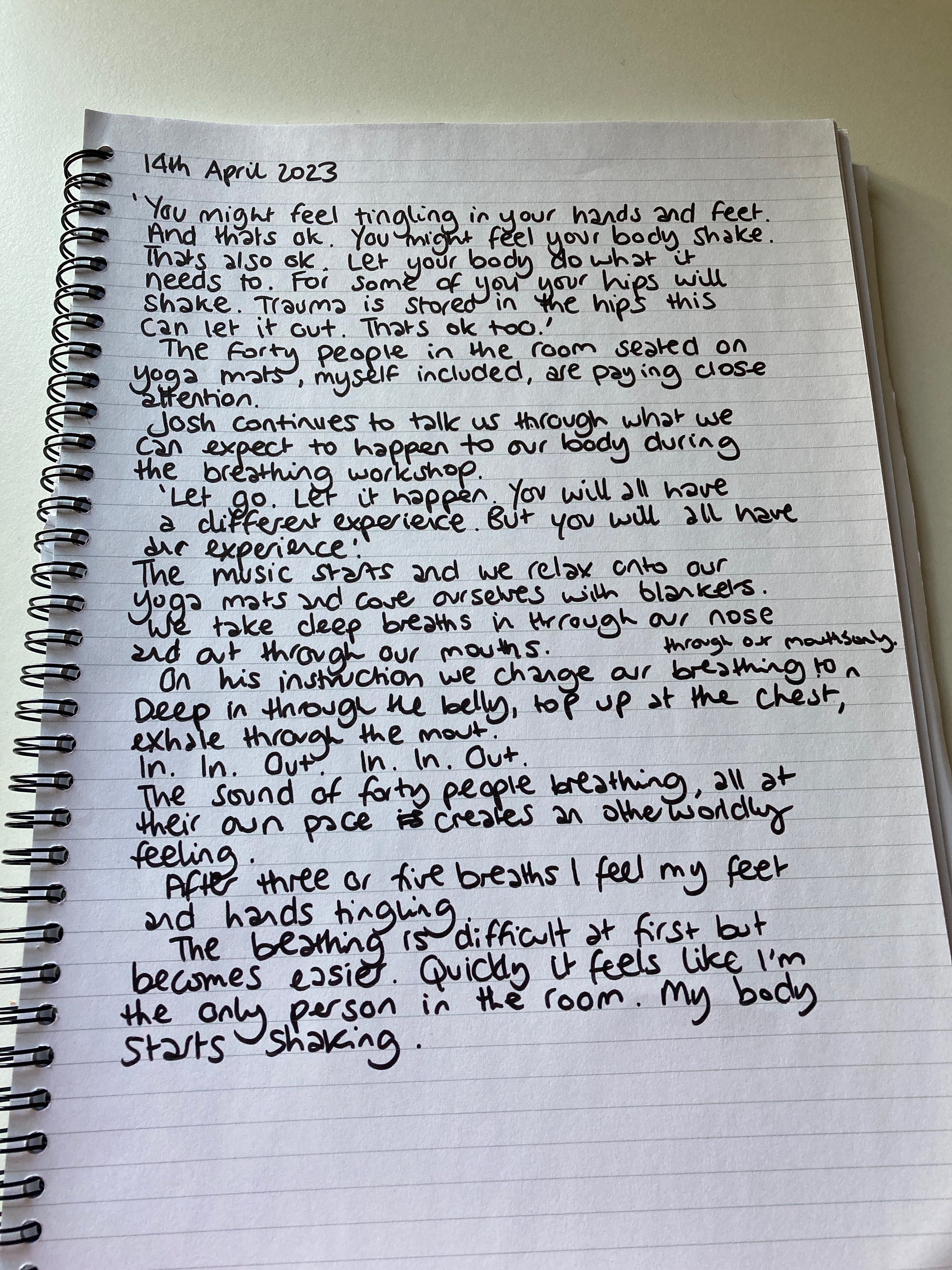 I have never done breathwork before and was recommended to try it out by my friend and work coach Emma Shanahan. For today’s ten minute writing and creative exercise I wanted to journal on the experience.