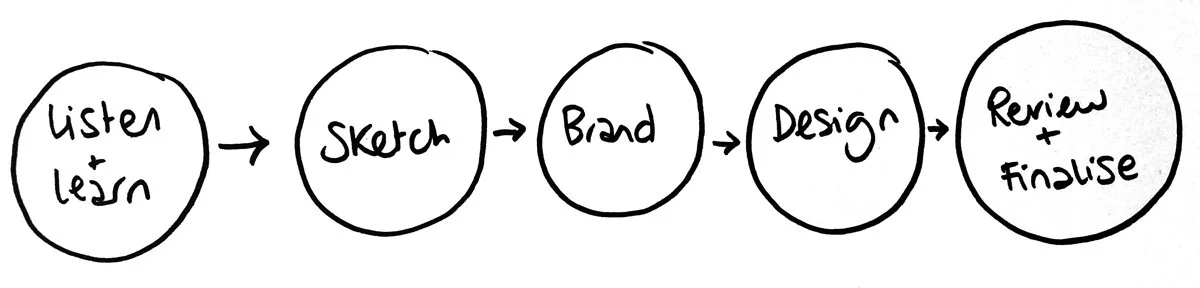 Post call we talk through our notes and the slides and create rough sketches of each layout and any diagrams so that we know what we need to do next. We like to think before we go onto the Mac.